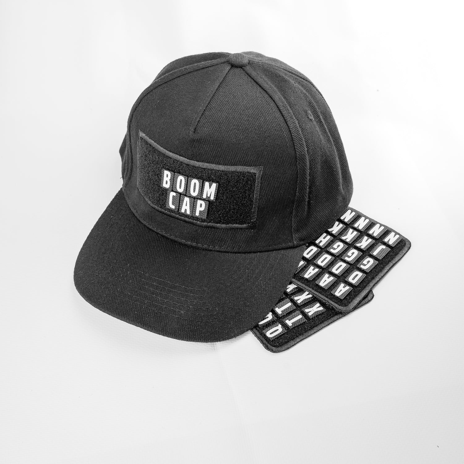 Нашият комплект съдържа черна или бяла шапка "Boom Cap", заедно с 130 букви, цифри и символи, отпечатани върху качествено велкро, заедно с две основи, така че можете да ги транспортирате със себе си.